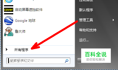桌面便笺这个小工具只能从开始菜单中打开。方法是,打开左下角的开始菜单,点击一下所有程序按钮。
