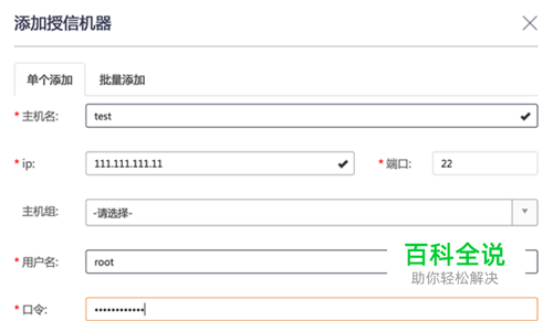 点击新增按钮,根据测试环境的主机IP,用户名,密码进行添加.这里只是个示例.添加成功后验证结果会显示success
