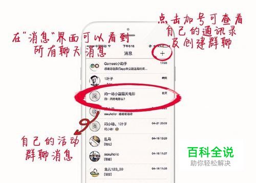 「消息」界面可以和关注的好友聊天或发起群聊等。想查看自己的通讯录或屏蔽某一用户的消息,都要在「消息」界面进入通讯录