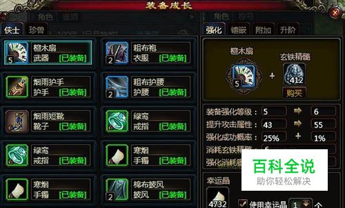 装备强化的作用:装备强化会以百分比提升装备的基础属性,最高可将基础属性提高至200%,十分强大!通过装备成长里的“强化”可消耗玄铁精髓来对任意装备进行强化。