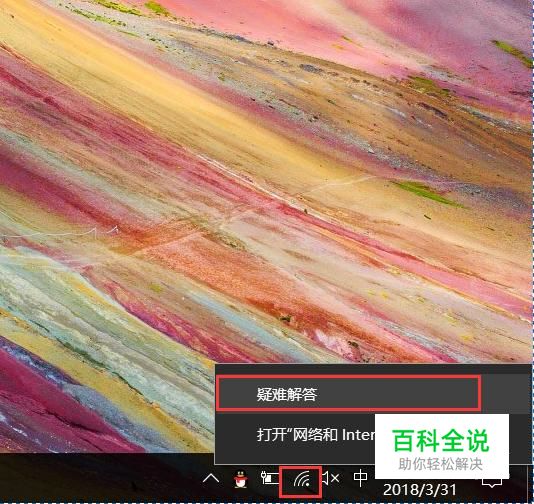 首先,在Win10系统任务栏中,找到网络连接图标,击右键,选择“疑难解答”选项。