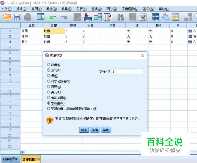 对变量类型进行选择,然后对宽度和小数点位数进行设置。