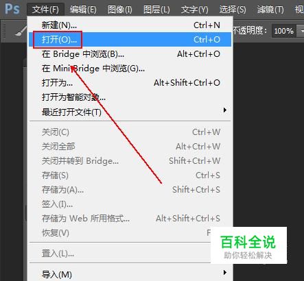 菜单栏:执行“文件”-“打开”命令,载入印章图片。