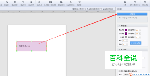 点击“添加链接”,在需要弹出word的页面画链接框,然后打开“动作属性”