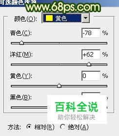 创建可选颜色调整图层,对黄色进行调整,参数设置如图17,效果如图。这一步加强图片的橙黄色。