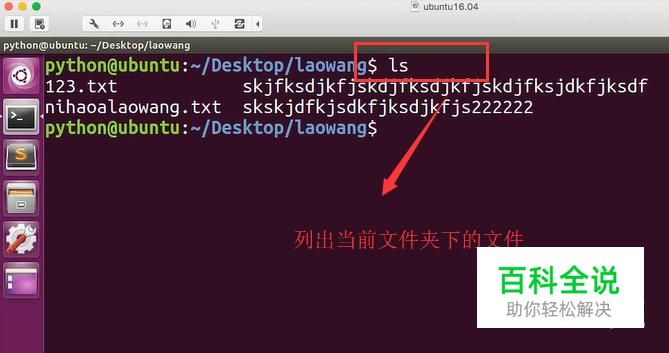 打开Ubuntu的终端命令行,然后直接输入ls命令,你会看到它把当前文件夹下面的所有文件都列举出来了,如下图所示