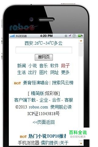 打开页面后,在下图 “仿真浏览器” 的地址栏内输入任何一个手机网址,如" http://roboo.com", 然后按回车键或用鼠标点击输入框右面图标按钮,你会看到仿真器就会显示出你输入的那个手机网页。