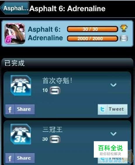 当你全部冠军,全部5星,车子全买,部件全升级之后就game over了么?no~no~no~~为时尚早。成就,对,就是现在的游戏都推崇的成就系统。看看你的成就吧,是不是还有一些没有解锁?刚开始我也没找到成就系统在哪儿,只知道游戏中开着开着会提示我解锁某个成就,但是不知道怎么看,后来才发现的,给大家指指路吧。就在游戏开始界面的Gameloft live标志那儿。如图箭头所指。