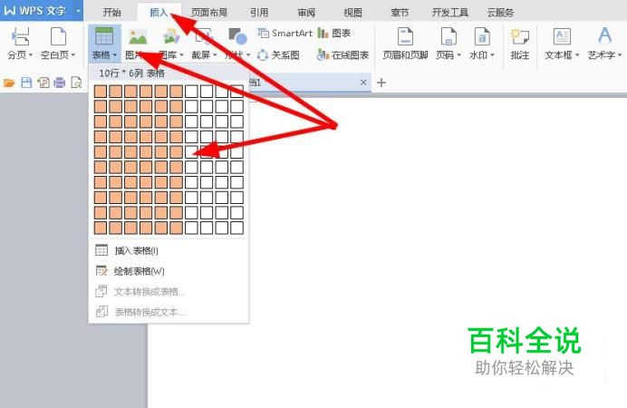 点击‘插入’栏目,然后点击‘表格’再然后选择我们需要创建多少行的表格,可以根据自己的需要进行设置。如图