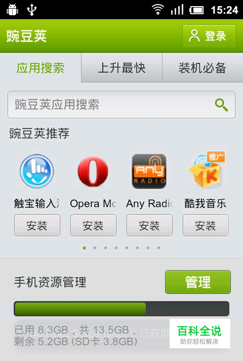 第一步:好,首先就是在手机上打开豌豆荚,您会看到下图: