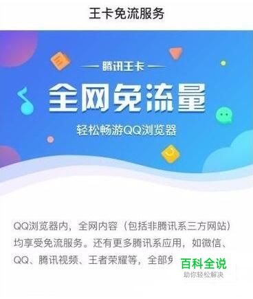 绑定好后,回到初始的页面,也就是菜单的第一页,你会发现你所登录的账号下面多出一行字“正在享受王卡免流服务”,看到这几个字后,说明你的QQ浏览器已经实现“全网免流量”了。