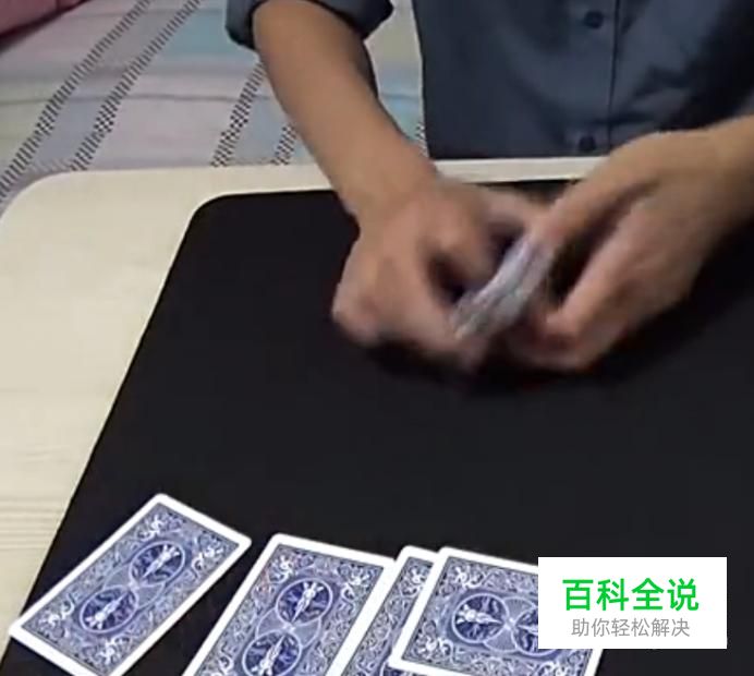 最后一张牌需要技巧了,需将抽出来的牌和A紧密靠拢,然后用大拇指和中指分别捏住两张牌的角,再迅速翻牌,即变成A了