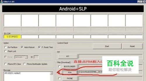 手机关机,然后同时按住音量键—、HOME键、电源键,等待3秒,出现英文界面后再按音量键+,进入界面为绿色机器人,此为刷机模式,打开odin3v1.85,会自动识别你的手机,识别成功后会在ID:COM处显示黄色,然后选择对应的刷机包文件CODE_N7000ZSKJ6_REV02_user_low_ship.tar,点PDA,找到确定,然后点start就开始刷机了