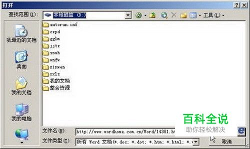 第1步,打开word2003,依次单击“文件”→“打开”菜单命令,打开“打开”对话框。在“文件名”编辑框中输入禁止复制内容的网页地址,并单击“打开”按钮,如图所示。