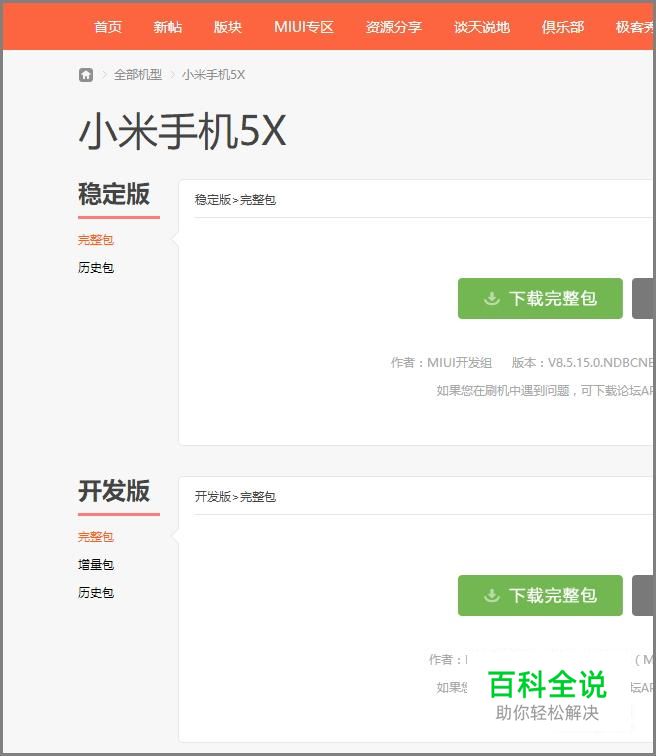 首先我们到小米官网,下载小米5x的系统安装包,我们可以选择稳定版或者开发版,根据自己的喜好选择!