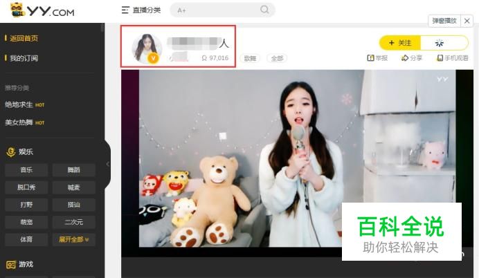 首先我们在电脑上打开yy直播,选择自己想看的主播,点击头像进入主播个人主页。