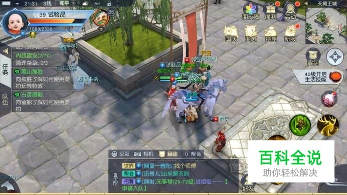 进入游戏主界面,玩家等级到达39级并且满经验后,在王城找到“灵婆”进行对话。