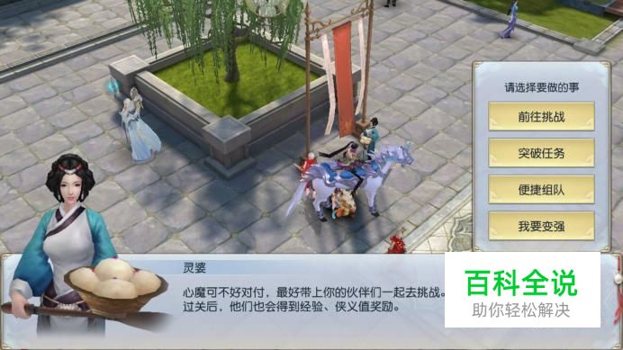 成功领取突破任务后,在左侧任务栏中即可查看,要求我们通关心魔试炼,点击任务进入组队界面。