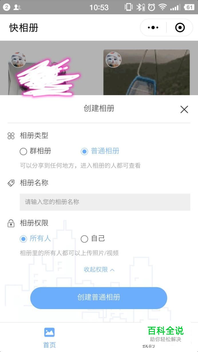能创建群相册和普通相册。放照片用普通相册吧。群相册就和QQ群相册一样的。 普通相册的情况下,如果你不把相册分享给别人,别人是看不到你的相册和照片的