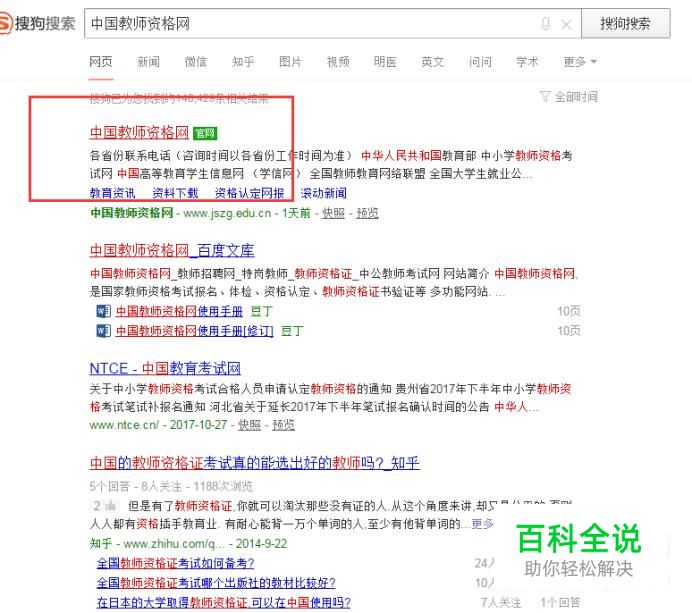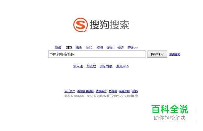 打开搜狗搜索,手动输入“中国教师资格网”点击“搜索”。