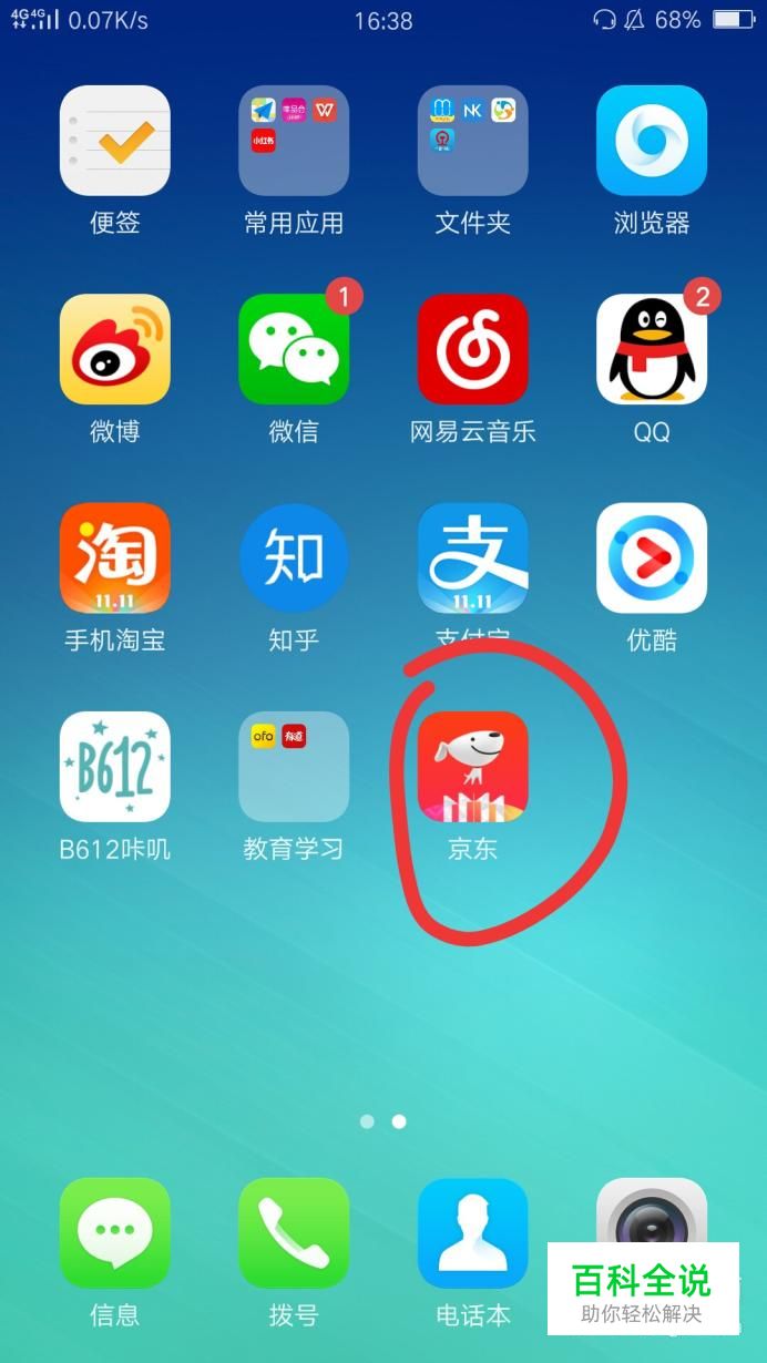 首先,打开手机,找到京东图标,点开