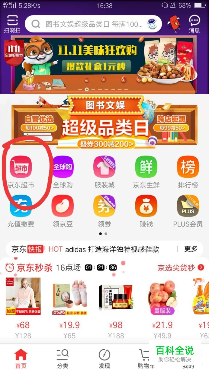 点开后的界面如图所示,我们找到“京东超市”,点击