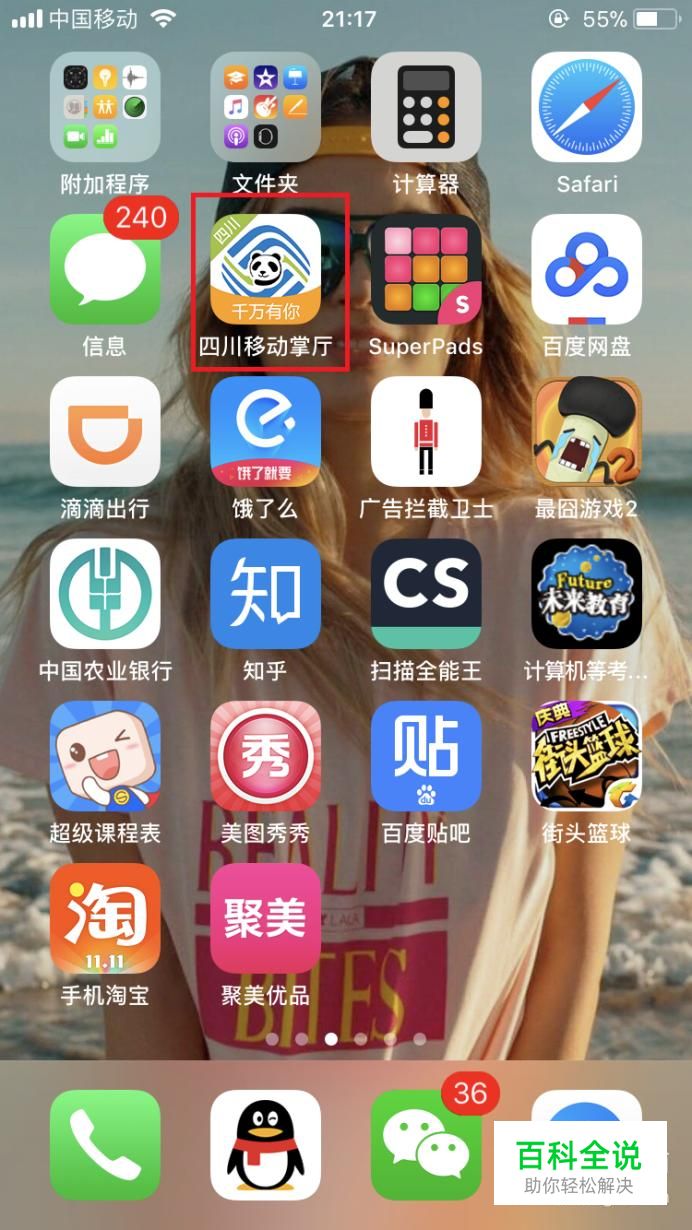 这里小编用的是移动卡来进行的讲解,电信和联通也是类似的方法。 我们打开专门的中国移动APP,每个地区的都不一样,这里小编的是四川移动掌厅。