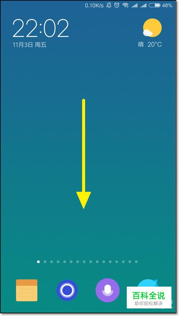 在小米手机的首页,我们往下方滑动,打开通知栏。