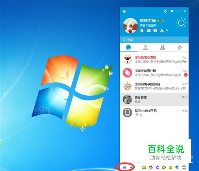 点击登录电脑上的QQ后,点击QQ聊天版面左下角的三个横杠,然后选择帮助。