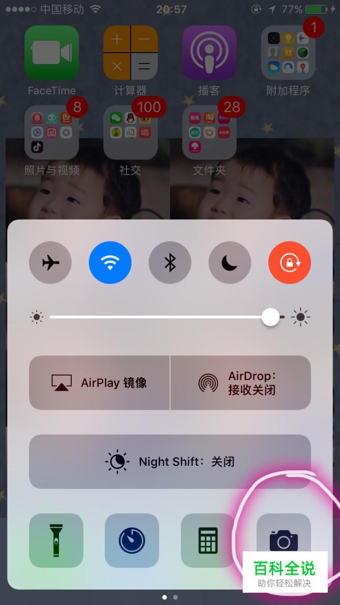 打开手机,苹果手机可以不用解锁屏幕,直接手触屏幕往上啦,就能看到一些快捷功能,选择右下角相机