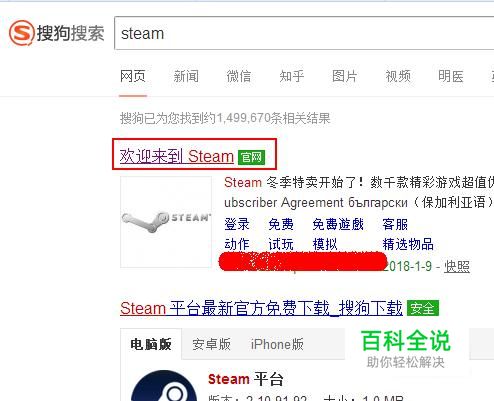 在搜狗搜索引擎中输入关键词steam