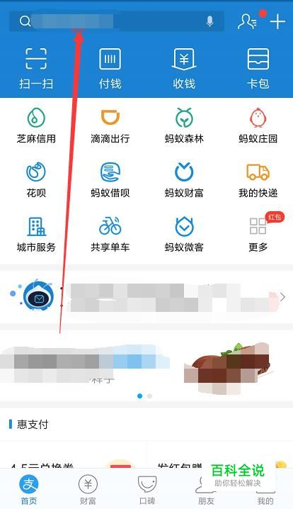 打开支付宝界面,进入搜索页面;