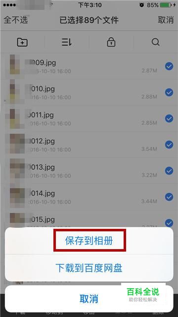手机百度网盘中的图片怎么下载到手机相册