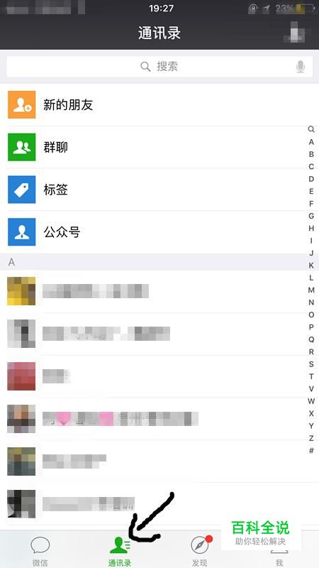 点击通讯录。想知道朋友圈中某个人是否将自己屏蔽掉或者删除掉的话,要点击微信界面中的通讯录,这样才能知道有关信息。