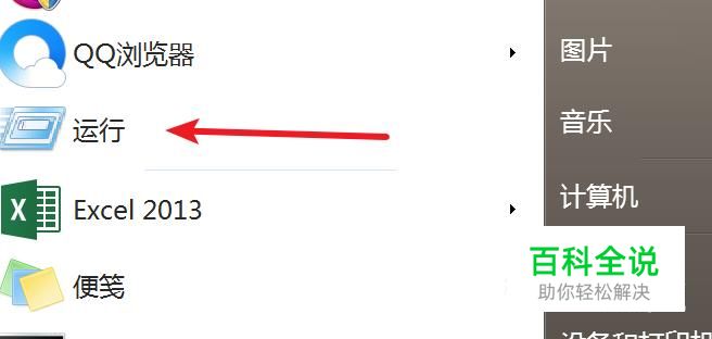 在开始菜单上找到‘运行’并点击打开。