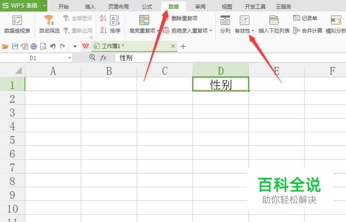 进入后,我们输入数据,然后点击“数据”选项卡——“有效性”。