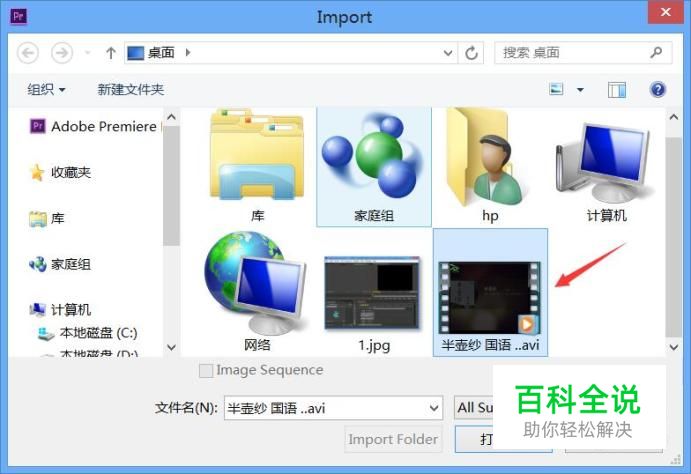 打开premiere这款软件之后,我们按下Ctrl+I键,在弹出的导入对话框了我们选择视频文件,如图所示: