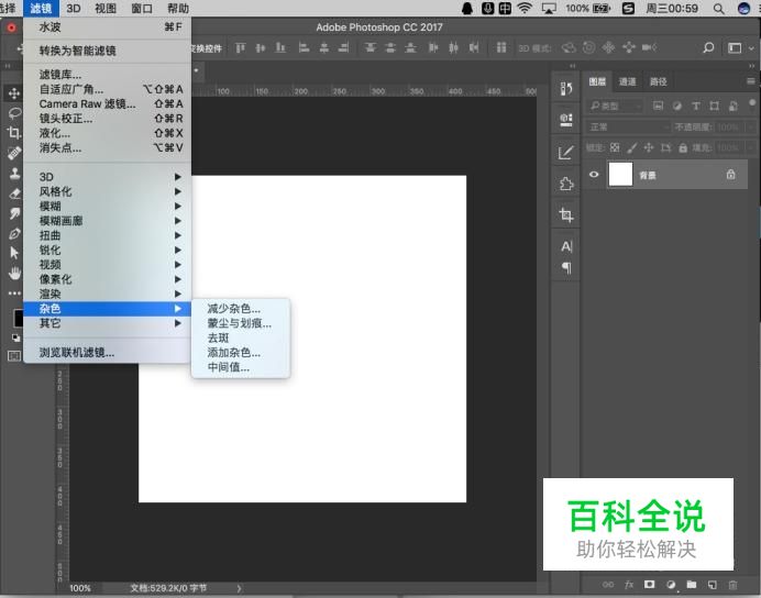 在上方选项中点击“滤镜-杂色-添加杂色”