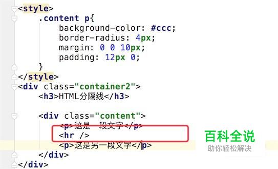 先看下我们的html代码,二个p段落,中间用hr作分隔,代码如图。
