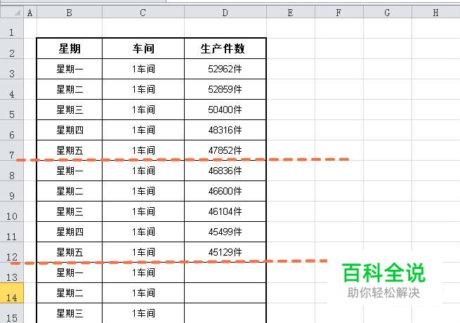 打开例表,本例表中需要在每个"星期五"后面插入一行空行。