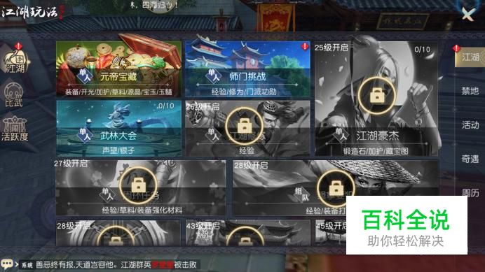 进入活动界面,点击“武林大会”,奖励可获得声望和银子。