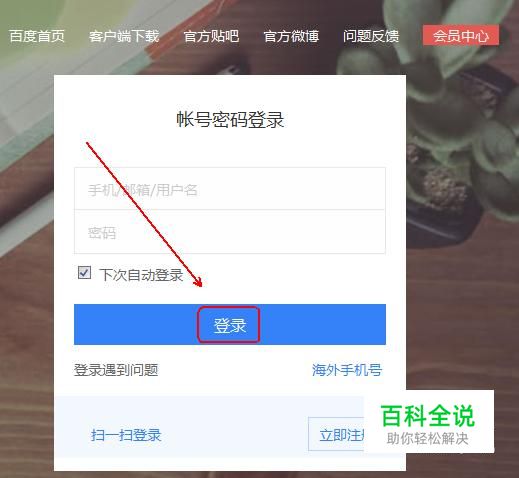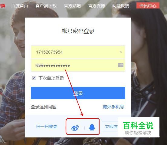 如果我们已经有百度账号,则输入账号和密码就可以直接登录(不用重复注册)