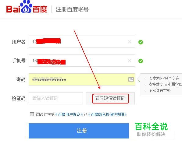 在注册页面里输入用户名、手机号和密码并点击“获取短信验证码”按钮。