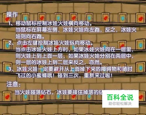怎么玩森林冰火人双人闯关小游戏 2025-06-08 22:58:25 森林冰火人双人闯关游戏。 操作方法 01 进入游戏页面后,等待游戏继续加载。 02 点击“进入游戏”,进入游戏开始界面。 03 点击查看“游戏说明”。 04 点击“开始游戏”选项。 05 根据游戏操作说明运作游戏。 赞 (0) 相关推荐 森林冰火人双人迷宫小游戏攻略 森林冰火人双人迷宫是一款对战游戏,由两个玩家同时进行,分别控制火娃和冰娃,然后比赛看谁能先走出迷宫,只要比对手走的快,就能获得更多的分数,下面就来和小编一起看看该游戏怎么玩吧! 操作方法 01 首先我 ... 怎样玩森林冰火人3 全新的森林冰火人登场了,本作除了继续传承经典的解谜玩法和可爱的男女主角形象外,还增添了全新的机关供玩家挑战,部分关卡会在黑夜中进行,一不小心就迷路啦. 步骤/方法 01 点击PLAY,开始游戏: 02 ... 怎样玩森林冰火人(2无敌版) 森林冰火人第二部,魔幻的森林已经再也没有秘密了,这次两位小英雄来到了神秘的金字塔内继续冒险.帮助森林中的水女孩和火男孩顺利过关并收集所有的宝石,有时候要两个人很好的配合才能通过难关哦,喜欢挑战的玩家和 ... 森林冰火人第四关攻略 森林冰火人是一款有趣的脑力游戏,男生和女生,化身为水火不熔的火精灵跟水精灵.你要做的就是收集,代表各自元素的石头.巧妙解开各种机关,顺利到达出口 步骤/方法 01 首先,火人先站在起重机上,由冰人推动 ... 森林冰火人第五关(左)攻略 森林冰火人是一款有趣的脑力游戏,男生和女生,化身为水火不熔的火精灵跟水精灵.你要做的就是收集,代表各自元素的石头.巧妙解开各种机关,顺利到达出口 步骤/方法 01 首先由火人跳上开机关,再由冰人跳上开 ... 森林冰火人,怎么玩? 森林冰火人,是冰人和火人一起闯关的游戏,二人要同时到达最终的大门才能过关,缺一不可的,下面我们来看一下怎么玩. 操作方法 01 红色的泥沼地,只能是红色的火人过去收集钻石,蓝色的泥沼地就要冰人去收集了 ... 森林冰火人3中文版2攻略 全新的森林冰火人登场了,本作除了继续传承经典的解谜玩法和可爱的男女主角形象外,还增添了全新的机关供玩家挑战,部分关卡会在黑夜中进行,一不小心就迷路啦.所以,最好带着你的伙伴一起游戏,分享记忆,因为本作 ... 森林冰火人2中文无敌版小游戏 森林冰火人2中文无敌版小游戏,森林冰火人2中文无敌版,游戏别名<火娃冰娃勇闯光明神殿无敌版>.冰火人无敌!!魔幻的森林已经再也没有秘密了,这次两位小英雄来到了神秘的金字塔内继续冒险. 游戏 ... 森林冰火人2最新攻略及说明 操作方法 01 游戏攻略篇 森林冰火人第二部,魔幻的森林已经再也没有秘密了,这次两位小英雄来 到了神秘的金字塔内继续冒险.帮助森林中的水女孩和火男孩顺利过关并 收集所有的宝石,有时候要两个人很好的配合 ...