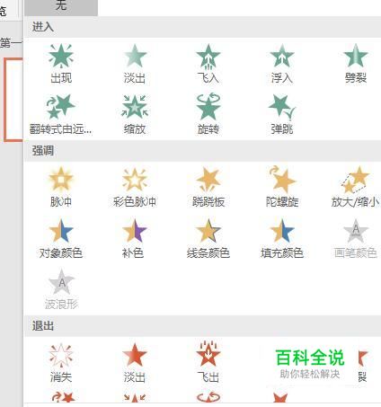 然后将动画窗格拉出,接着选择一种动画效果,直接进行选择即可,有很多中,进入、退出或者其他类型的动画,都是可以点击插入的。