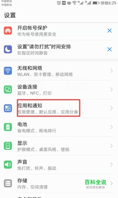 进入设置后,我们点击应用和通知;