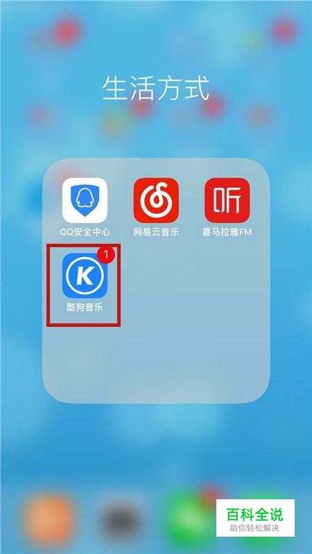 首先在我们的手机桌面上的酷狗音乐并点击它,如下图所示。