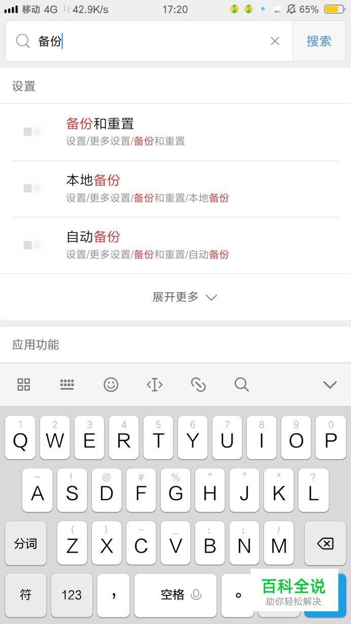 在设置里面搜索"备份"就可以找到备份设置,点击进入备份,完了把备份文件保持到电脑或铺上。