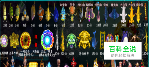首先介绍一下鱼的种类和每种鱼代表的倍数,详情请看下图。