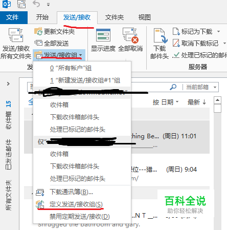 找到发送/接收组点击,找到其中的定义发送/接收组设置